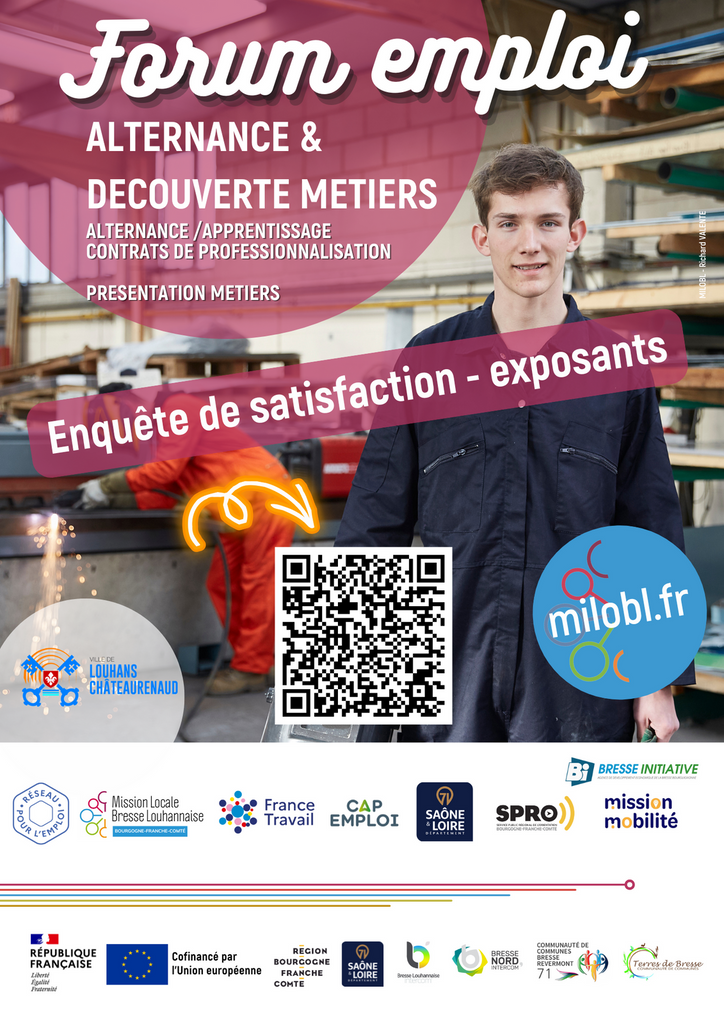 La Mission Locale de la Bresse Louhannaise organise le prochain Forum emploi Alternance & Découverte métiers qui se tiendra le mardi 21 avril 2026 de 14h00 à 17h00 au Palace Pierre Provence de LOUHANS.